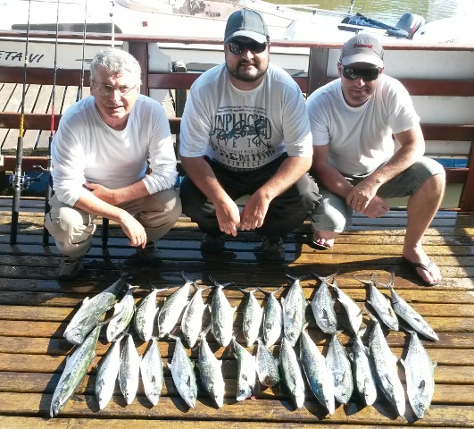 O mês de Agosto começou com ótimas pescarias na região de Piçarras com muitas anchovas e sororocas sendo embarcadas pelas equipes da Marina Bela Vista. Também foram fisgados alguns vermelhos e espadas. Um dos destaques desse final de semana foi a equipe Happy Day (foto ao lado) que fez grande pescaria de anchovas nesse sábado. Outro destaque deste início de Agosto foi a equipe Pirueta (foto abaixo) que largou na frente na etapa de Agosto do campeonato marcando 91,00 pontos com muitas sororocas fisgadas. A equipe M33 do Clube do Barco também fisgou sororocas e já iniciou a oitava etapa do campeonato na segunda colocação com 33,50 pontos. Confira na Galeria de Fotos estas e todas as demais imagens das equipes da MBV deste início de mês que já começou com muitos peixes em Piçarras.