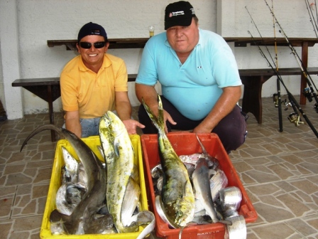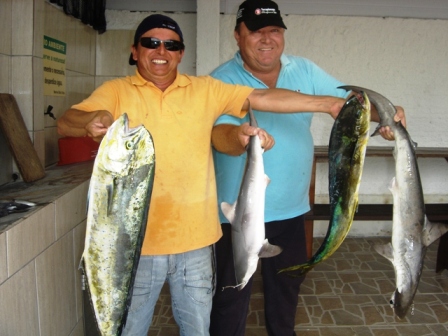 Este final de semana foi novamente de tempo instável na região de Piçarras. No sábado o tempo ficou mais fechado e com o vento sul soprando com maior intensidade durante todo o dia deixando o mar agitado. Já no domingo, o vento diminuiu um pouco a intensidade e o tempo melhorou um pouco possibilitando a saída de algumas embarcações. Foi neste dia que o Melo, comandante da equipe Gabiana - que estreou na MBV neste final de semana, em conjunto com o Zecão, fez grande pescaria embarcando dourados e cações e acabou sendo o destaque da semana.