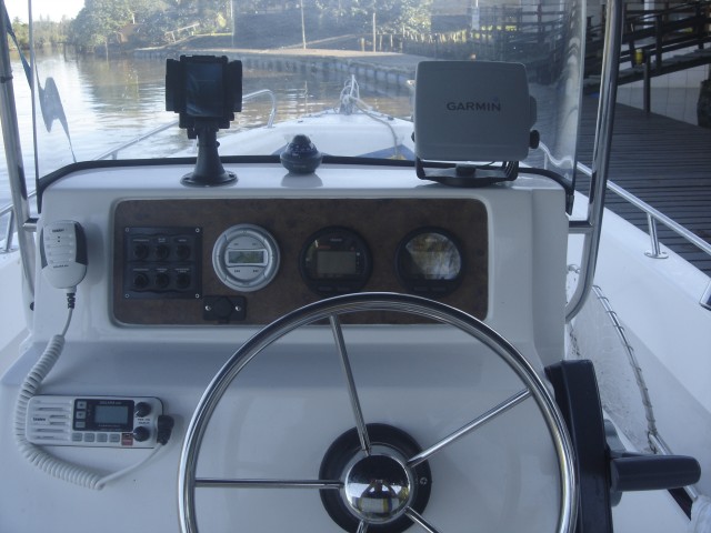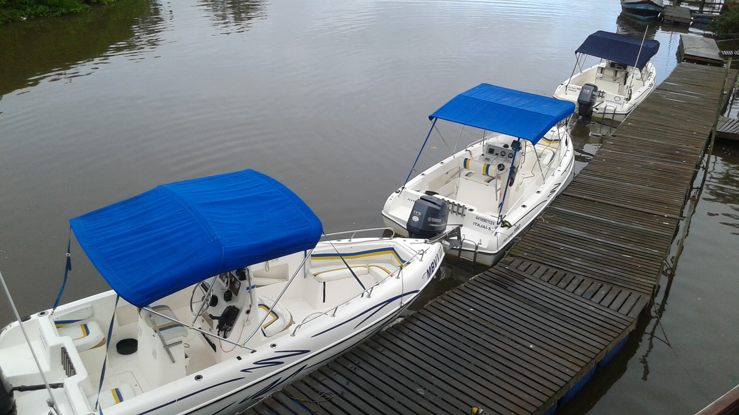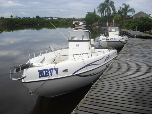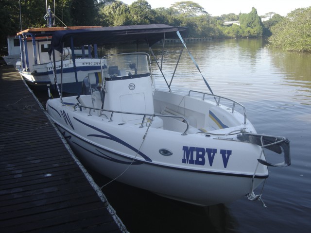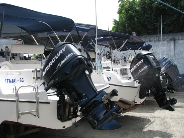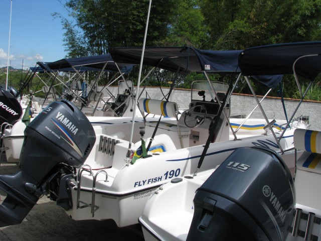 Os barcos disponíveis são de 19 pés, modelo Flyfish 190, com motor 115HP, todos equipados e preparados para a pesca ou um passeio na região.