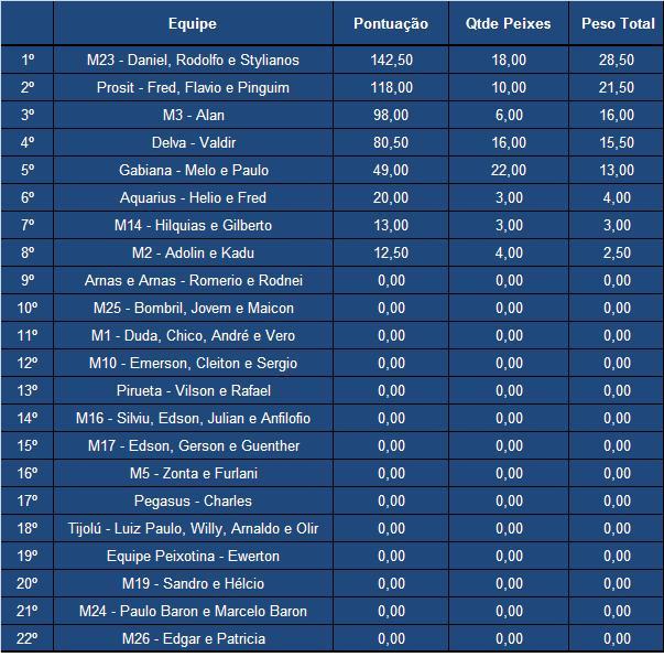 Confira abaixo a classificação parcial com a pontuação das equipes que já saíram neste início da quarta etapa do campeonato da MBV de 2014: