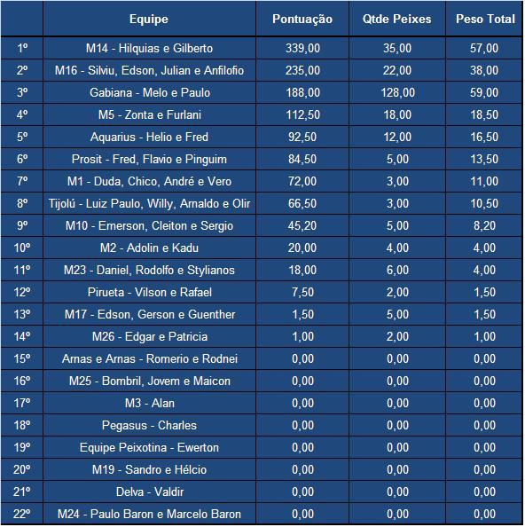 A equipe M14 do Clube do Barco (foto em destaque), com vários dourados fisgados em pescaria realizada no início de maio, confirma a melhor pescaria do mês e é a campeã da quinta etapa do campeonato deste ano marcando 339,00 pontos. Com este resultado a equipe também subiu quatro posições na classificação geral assumindo agora a quarta colocação no ano. Na segunda colocação em maio, também com bela pescaria de dourados ficou a equipe M16 do Clube com 235,00 pontos. Confira abaixo a classificação final desta etapa e na galeria de fotos todas as imagens das equipes da MBV de maio.