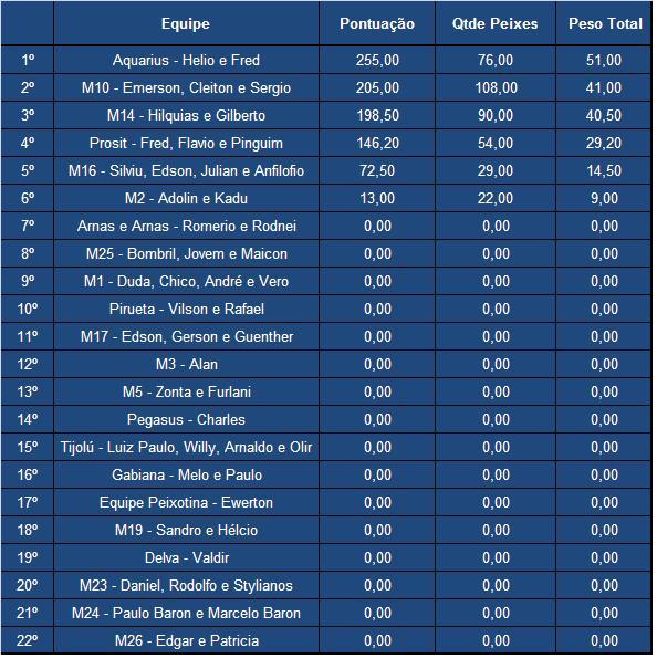 Confira a classificação parcial com a pontuação das equipes que já saíram nesta sétima etapa do campeonato da MBV de 2014.