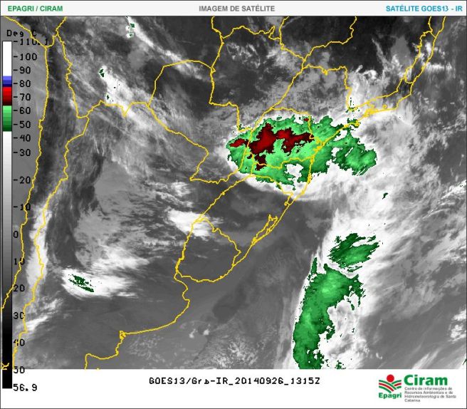 Imagem do satélite desta sexta-feira mostra a presença ainda de muita instabilidade na região