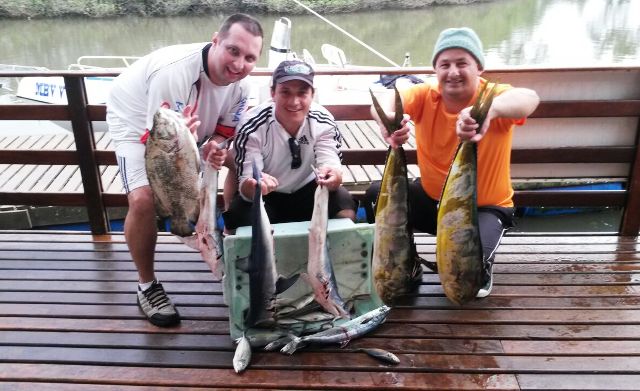 Após vários dias sem pescarias na região de Piçarras, nesta última semana algumas equipes conseguiram sair, apesar de que no sábado o mar voltou a não colaborar muito com as equipes. As pescarias ainda não foram muito produtivas, mas foram embarcados peixes de fundo, algumas anchovas e também dourados, anequins, e prejerebas. Um dos destaques foi a equipe Gabiana (imagem ao lado) que marcou 57,50 pontos pelo campeonato. A outra equipe que também conseguiu pontuar no final de semana foi a M14 do Clube do Barco marcando 18,00 pontos. Outro destaque da semana foi a equipe M13 do Clube (imagem abaixo) que fisgou, entre outros peixes, dourados e anequins. Confira na galeria de fotos estas e as outras imagens das equipes da MBV deste início de Outubro.