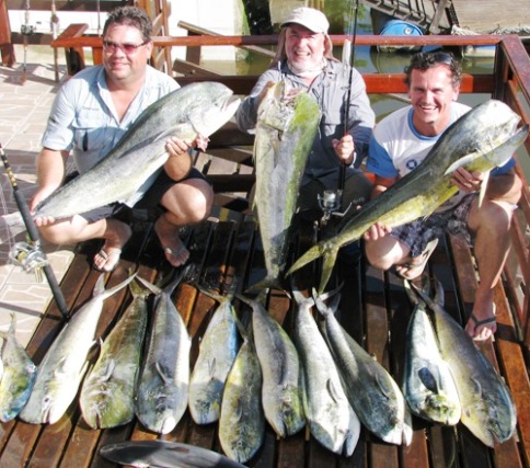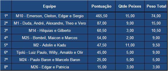 Este domingo foi de tempo estável com predomínio de sol e de muita pescaria na região de Piçarras. As equipes da MBV novamente fizeram grandes pescarias com muitos dourados embarcados e também com um belo troféu fisgado. Um dos destaques foi a equipe M10 do Clube do Barco (foto ao lado) que assumiu a liderança da etapa de novembro do campeonato marcando 465,50 pontos. Com este resultado a equipe M10 assumiu também a liderança da classificação geral do ano, porém as demais equipes que estão no G8 ainda têm saídas em aberto até o final do mês. Outro destaque desse domingo foi a equipe Fabinho (foto abaixo), que além de embarcar vários dourados, fisgou o troféu da semana – um cação anequim de 22 kg. Confira na Galeria de Fotos estas e todas as demais imagens das equipes desta semana.