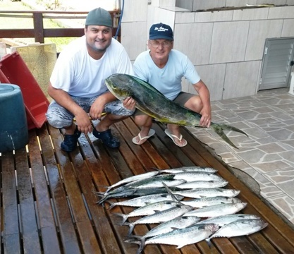 A última semana de novembro foi de muitas pescarias na região de Piçarras, com exceção do domingo onde o vento nordeste mais forte deixou o mar agitado prejudicando a saída das embarcações. As equipes da MBV novamente fizeram grandes pescarias embarcando principalmente dourados e sororocas. Um dos destaques foi a equipe Pirueta (foto ao lado) que fisgou várias sororocas e um belo dourado pelo campeonato. Outro destaque dessa semana foi a equipe Aquarius (foto abaixo) que marcou 221,00 pontos pelo campeonato chegando à terceira colocação na etapa de Novembro. Confira na Galeria de Fotos do Portal da MBV estas e todas as demais imagens das equipes desta semana e também de todo mês.