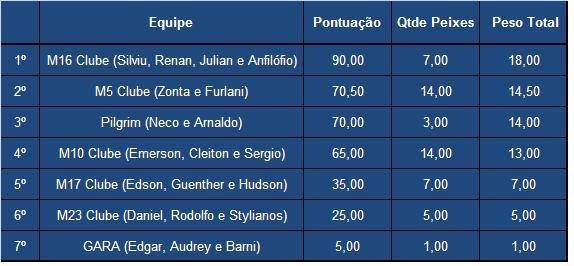 Ao longo da última semana algumas equipes marcaram pontos para a segunda etapa do campeonato deste ano. Um dos destaques foi a equipe Pilgrim (foto ao lado) que embarcou dourados pelo campeonato marcando 70,00 pontos. Já no feriadão de carnaval, onde a maioria das equipes poderia pontuar, o tempo instável e o mar agitado acabaram prejudicando a saída das embarcações. Pelo campeonato, das 17 equipes inscritas, apenas 7 conseguiram pontuar nesta etapa de Fevereiro até o momento, conforme classificação abaixo. Confira também na galeria de fotos do Portal da MBV esta em destaque e todas as demais imagens das equipes deste mês.
