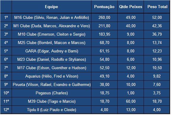 O mês de Abril segue com ótimas pescarias na região de Piçarras com muitos dourados e sororocas sendo embarcados pelas equipes da Marina Bela Vista. Outros peixes que também têm aparecido com freqüência nas linhas das equipes são as bicudas e as prejerebas. Um dos destaques dessa semana foi a equipe M1 do Clube do Barco (foto ao lado) que fez grande pescaria de dourados neste sábado. Com esta pescaria a equipe marcou 211,80 pontos e assumiu a segunda colocação nesta quarta etapa do campeonato. Outro destaque da semana foi a equipe M16 do Clube do barco (foto abaixo) que, além de dourados, fisgou várias sororocas neste domingo assumindo a liderança de Abril com 260,00 pontos. Confira na Galeria de Fotos estas e todas as demais imagens das equipes da MBV deste mês. Pelo campeonato, outras equipes também pontuaram nesta última semana. Confira no quadro abaixo a classificação parcial desta etapa de Abril.