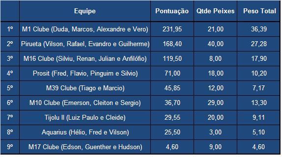 A equipe M1 do Clube do Barco (foto ao lado), com grande pescaria de dourados em pleno mês de maio, confirma a melhor pescaria do mês e é a campeã da quinta etapa do campeonato de pesca da MBV de 2015 com 231,95 pontos. Com este resultado, a equipe M1 segue firme na liderança da classificação geral deste ano. Em segundo nesta etapa de Maio, com bela pescaria de sororocas, ficou a equipe Pirueta (foto abaixo) marcando 168,40 pontos. Confira abaixo a classificação final desta etapa com a situação das equipes que marcaram pontos e na galeria de fotos do Portal todas as imagens das equipes da MBV de Maio.