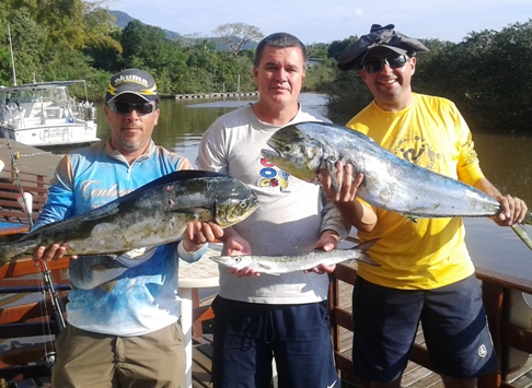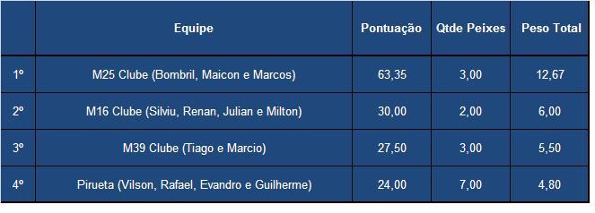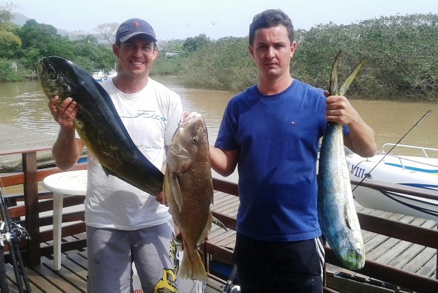 Após uma semana de tempo instável e mar agitado na região de Piçarras, neste final de semana o tempo melhorou e as embarcações conseguiram sair. Os principais peixes embarcados foram os dourados, além também de algumas sororocas, espadas e corvina. Um dos destaques foi a equipe M25 do Clube do Barco (foto ao lado) que fisgou dois belos dourados em pescaria realizada nesse domingo, sendo o maior um troféu de 7,00 kg. Com esta pescaria, a equipe assumiu a liderança da etapa de Setembro do campeonato da MBV marcando 63,35 pontos. Outro destaque foi a equipe M37 do Clube do Barco (foto abaixo), que além de fisgar dourados, embarcou uma bela corvina em pescaria realizada no sábado. Confira abaixo também a classificação parcial desta etapa do campeonato com a situação das equipes que já pontuaram e na galeria de fotos no Portal da MBV estas e todas as demais imagens das equipes de Setembro até o momento.