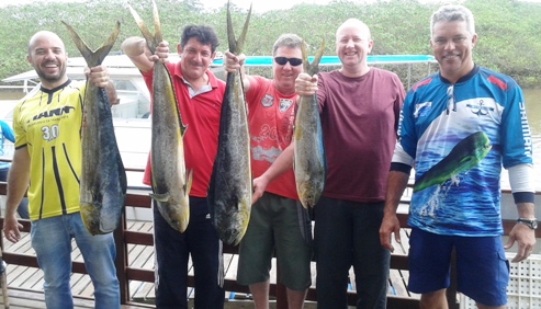 Apesar desta última semana as condições do tempo não terem ajudado muito, principalmente na sexta-feira e no sábado onde o mar ficou mais agitado em função do vento sul, o mês de Novembro segue com ótimas pescarias na região de Piçarras.  As equipes da Marina Bela Vista aproveitaram os dias em que as condições permitiram a saída e voltaram a fisgar muitos dourados e espadas. Um, entre os vários destaques dessa semana, foi o Mestre Silviu que tem realizado grandes pescarias em Piçarras. Em uma de suas pescarias nessa semana (foto acima), a equipe fisgou belos dourados. Outro destaque foi a equipe Pilgrim, do Comandante Neco Moser (foto abaixo), que também embarcou vários dourados. Tanto o Mestre Silviu como o Neco Moser, que organizam pescarias saindo da Marina Bela Vista, ficam a disposição para quem tiver interesse em pescar na região de Piçarras através do site www.mestresilviu.com.br ou em contato direto com a Marina Bela Vista.  As lanchas são as Carbrasmar 32 e 27 pés, todas bem equipadas para oferecer uma pescaria com conforto e segurança. Confira também na Galeria de Fotos no Portal da MBV estas e todas as demais imagens das equipes deste mês que segue com muitos peixes em Piçarras.