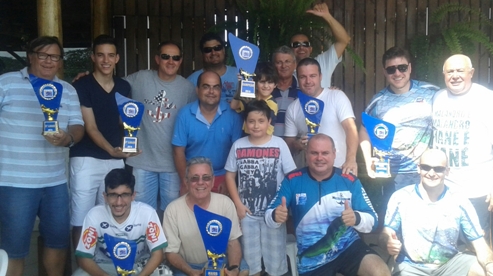 Neste último sábado foi realizada a festa de encerramento de ano da Marina Bela Vista e também a entrega da premiação do campeonato de pesca de 2015. Das dezoito equipes participantes do campeonato deste ano, as oito primeiras colocadas e a equipe do maior peixe receberam os troféus da MBV. Conforme foto em destaque, as equipes que receberam a premiação neste sábado foram as equipes Pirueta, Prosit, e as equipes M1, M16, M25 e M5 do Clube do Barco. As equipes Aquarius e M10 do Clube, que também ficaram entre os oito primeiros, acabaram não podendo participar do evento. A festa foi um sucesso com uma grande confraternização entre todas as equipes da MBV que participaram do evento. Confira abaixo a lista com o resultado dos premiados e na Galeria de Fotos as imagens do evento.