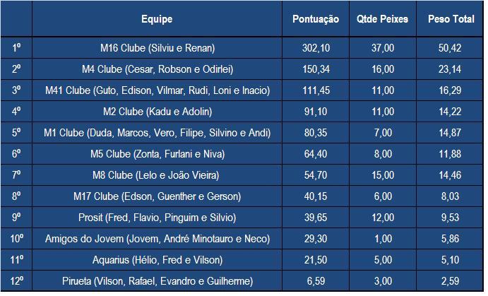 A equipe M16 do Clube do Barco (foto ao lado), com grande pescaria de dourados realizada ao longo de Março, confirma a melhor pescaria do mês e é a campeã da terceira etapa do campeonato de pesca da MBV com 302,10 pontos. Com este resultado, a equipe M16 subiu também duas posições na classificação geral assumindo agora a liderança no ano. Em segundo nesta etapa de Março com 150,34 pontos, também embarcando belos dourados em pescaria realizada no último dia da etapa, ficou a equipe M4 do Clube do Barco (foto abaixo), que com este resultado subiu várias posições na tabela geral do ano assumindo agora a quinta colocação. Confira abaixo a classificação final desta etapa com a situação das equipes que pontuaram no mês e na galeria de fotos no Portal da MBV todas as imagens das equipes de Março.