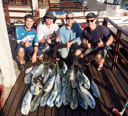 Essa última semana foi novamente de muitos peixes na região de Piçarras com as equipes da Marina Bela Vista (MBV) fazendo grandes pescarias. O principal peixe de Abril continua sendo os dourados, mas nesses últimos dias também foram embarcadas várias bicudas, além também de algumas sororocas e cavalas. Um dos destaques dessa semana foi a equipe Binha que fez grande pescaria de dourados no sábado (foto ao lado). Outro destaque foi a equipe M2 do Clube do Barco que também embarcou vários dourados em pescaria realizada na sexta-feira pelo campeonato (foto abaixo). Com essa pescaria a equipe M2 marcou 217,35 pontos e assumiu a terceira colocação na etapa de Abril do campeonato da MBV. Outras equipes que também saíram valendo pelo campeonato fizeram boas pontuações, conforme classificação parcial no quadro abaixo. Confira também na Galeria de Fotos no Portal da MBV estas e todas as demais imagens das equipes deste mês.