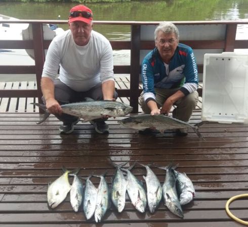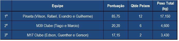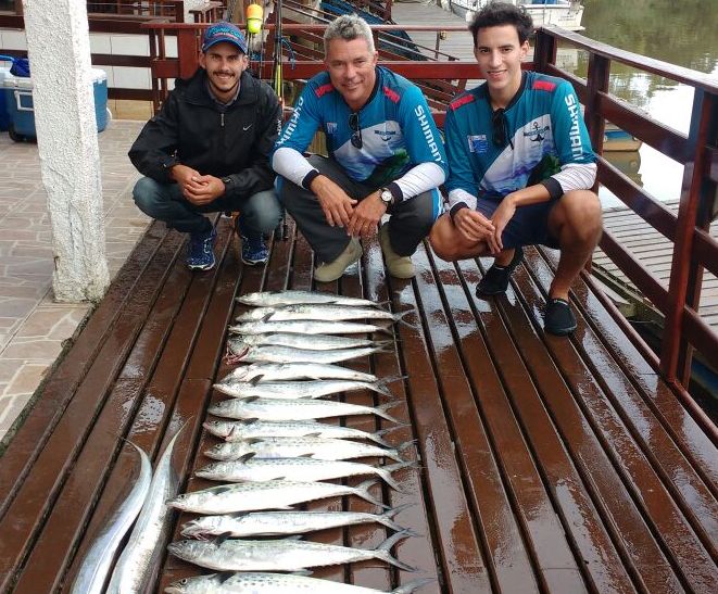 O mês de Maio, que apesar de não ter iniciado com muitos peixes na região de Piçarras, começa a melhorar com as equipes da MBV já fisgando algumas bicudas, anchovas e peixes de fundo. Como é comum nesta época do ano, já começaram a aparecer também os cardumes de sororocas na região. Um dos destaques dessa última semana foi a equipe Pirueta (foto ao lado) que embarcou várias sororocas no sábado. Com esta pescaria, a equipe assumiu a liderança da etapa de Maio do campeonato da MBV marcando 85,75 pontos. Outra equipe que também fez boa pescaria de sororocas foi a M16 do Clube (foto abaixo), porém acabou não marcando a saída pelo campeonato. Confira mais abaixo a classificação parcial desta etapa do campeonato com a situação das equipes que já marcaram pontos e na galeria de fotos no Portal da MBV, estas e todas as demais imagens das equipes de Maio até o momento.