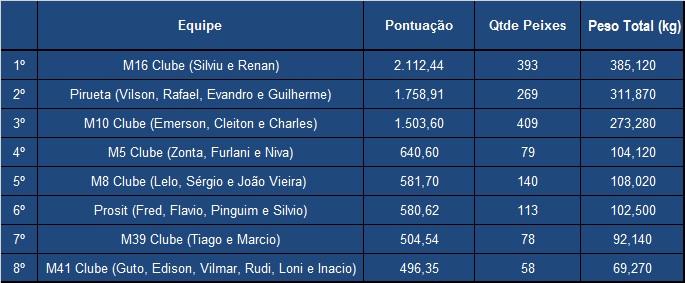 Maior peixe do Campeonato: Equipe M10 do Clube - Dourado de 9,740 kg fisgado em Abril/2016